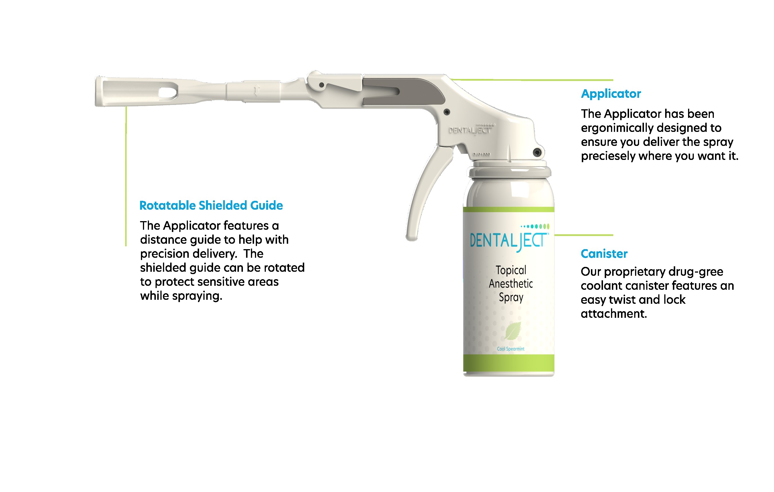 There is no waiting between the application and the injection, saving 3-5 minutes of chair-time per patient, which greatly improves workflows. Each canister provides up to 40 applications.